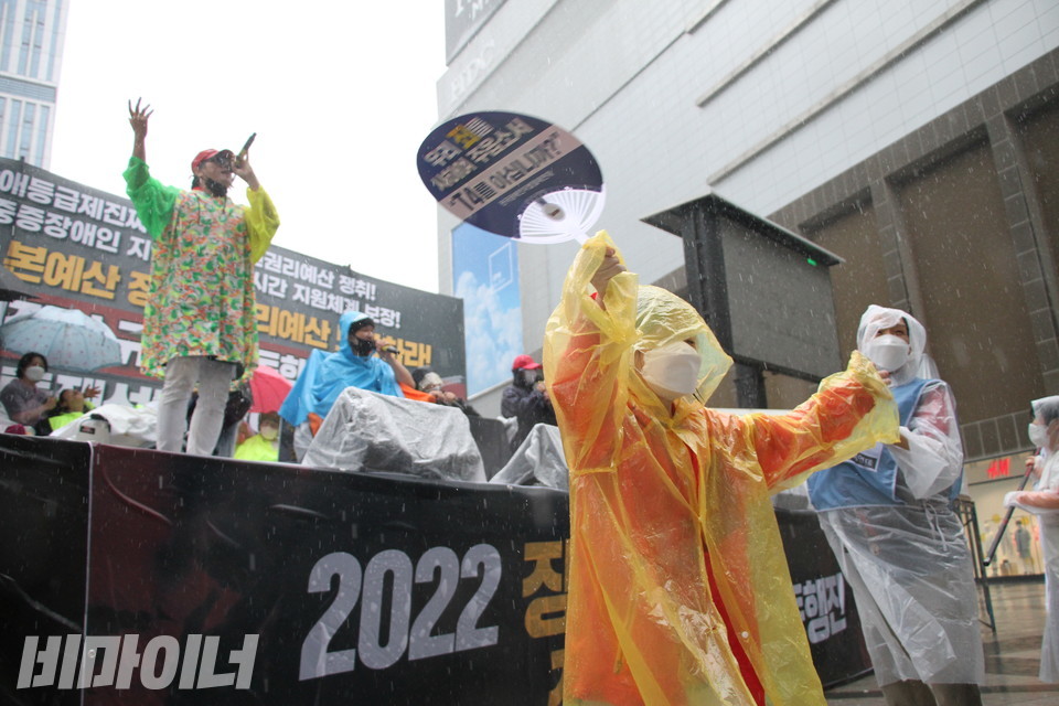 - 탈시설한 발달·중증장애인들 폭우 속 춤추고 노래하며 “장애인권리예산 쟁취”