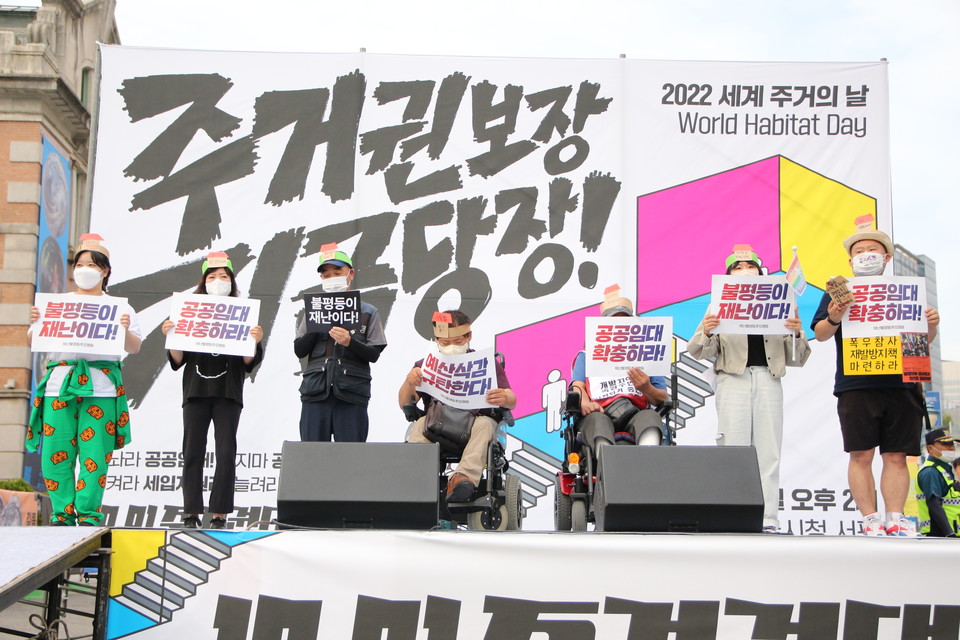 코로나19와 경제위기 속에서 불평등 문제는 더욱 가시화되면서 이에 대한 문제제기는 계속되었다. 그러나 불평등한 사회구조는 여전히 변하지 않았다. 폭우 참사 이후에도 서울시는 반지하를 없애겠다며 재개발·재건축 규제 완화정책을, 정부는 내년도 공공임대주택 예산 5조 6천억 원을 삭감한 예산안을 발표했다. 언론은 폭우 참사나 화재 참사와 같이 비극적인 사건이 발생했을 때 불평등을 살아내는 이들을 피해자로 호명하며 안타까움을 자아내고 해결을 촉구하지만, 정작 그들이 자신의 문제를 적극적으로 드러내는 상황에 대해서는 적절히 다루지 않는다. 원활한 대화를 통해서 해결될 수 있는 상황이 아니기에 항의, 기자회견, 집회 등의 방식으로 존재를 드러내지만, 대화로 풀 수 있는 문제인 양 왜곡하거나 예산과 생존을 저울질하며 중립적인 척, 객관적인 척 체면 차리기에 바쁘다.