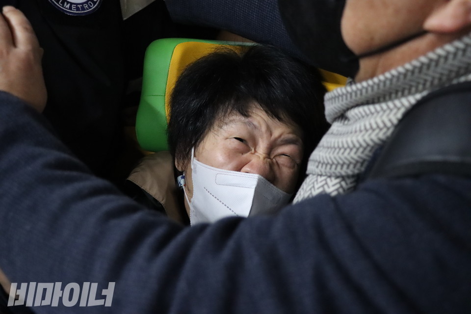 박주석 전장연 건강권위원회 간사는 “휠체어 이용자를 태울 수 있는 응급차가 전국에 한 대도 없다. 여기 계신 장애인 중 한 분이라도 밀려서 쓰러지면 큰 부상으로 이어질 수도 있는데 왜 그렇게 (무리하게 진압을) 하느냐”고 항의했다.