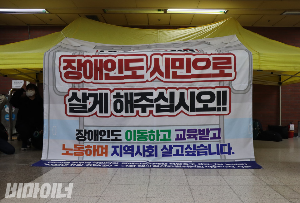 - 장애인권리예산 반영까지 무기한 천막 농성… 안 되면 “지하철 탑승 시위 재개”