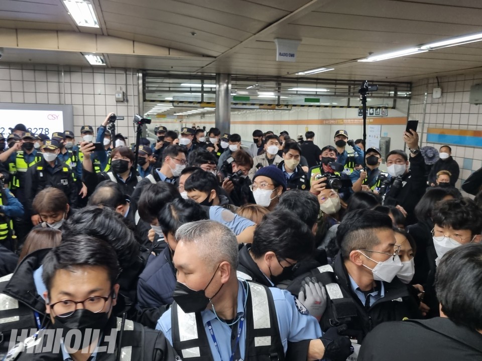 경찰‧서울교통공사‧활동가들 승강장서 20분가량 충돌