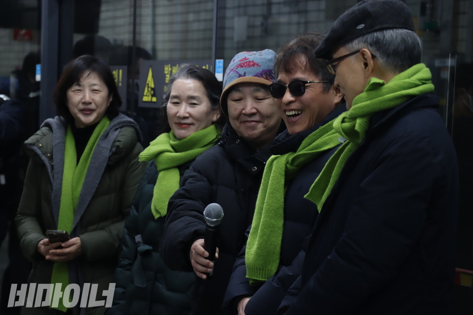 8시 35분, 종합예술단 ‘봄날’이 박경석과 자리를 바꾼다. 박수와 함성이 터져 나온다. 느리지만 조금씩 앞으로 나아가자고, 꿈이 꿈으로 그치지 않는 세상을 만들어가자고 말한 뒤 노래 세 곡을 잇달아 부른다. 미국에서 온 로리 씨가 목발을 짚은 채 고개를 좌우로 까딱까딱 흔든다. 고음의 소프라노가 승강장에 울려 퍼지자, 이형숙 서울시장애인자립생활센터협의회 회장의 눈동자가 함께 커진다.