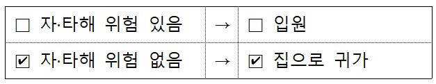 이러한 ‘새벽 2시의 응급실’의 모습은, 당사자와 가족, 의료진이 선택할 수 있는 선택지가 오직 두 가지뿐이라는 사실에 기인하는 바가 크다. 현재의 정신건강복지법 상에서 정신과적 위기 상황 속 모든 의사결정은 둘 중 하나를 결정하는 것으로 수렴한다.