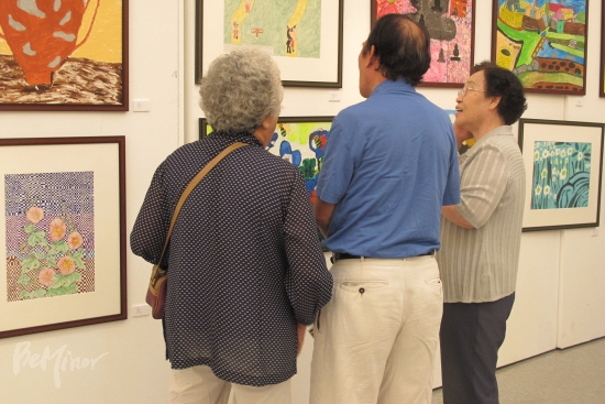 ![]() ▲지적장애인 미술 작품을 감상하고 있는 관람객. |