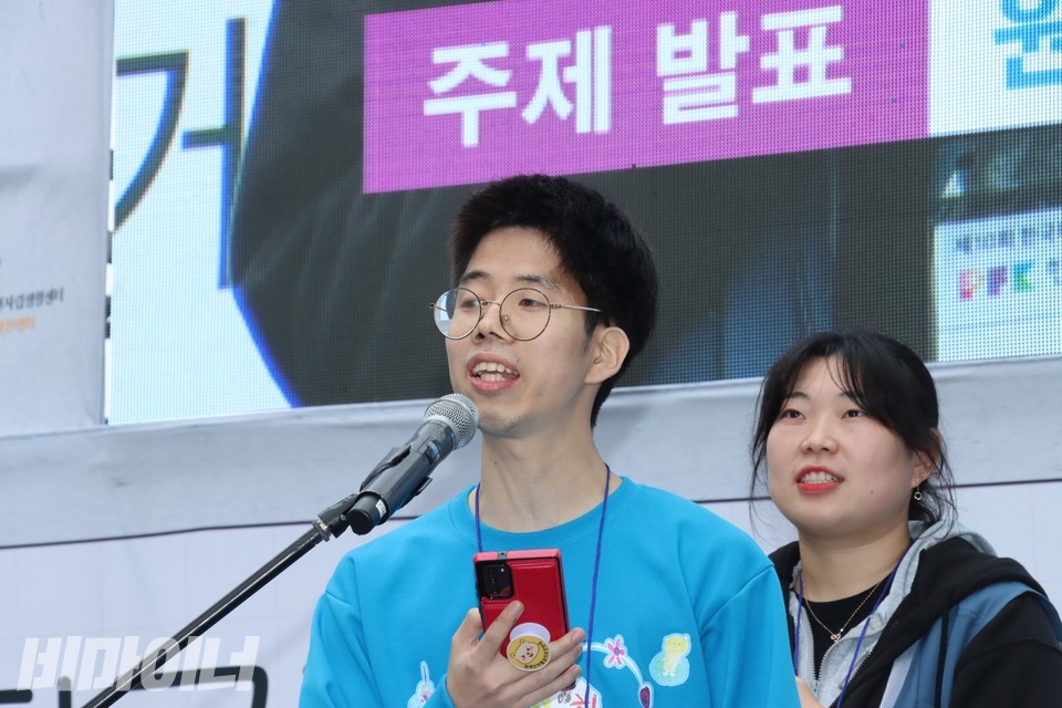 올해는 특히 ‘탈시설, 자립생활, 일자리’를 주제로 발표가 진행됐습니다. 발표가 끝난 후에는 “윤석열 대통령은 발달장애인의 탈시설과 자립생활을 지원하라. 동료지원가 사업을 살려내라”라고 요구했습니다.
