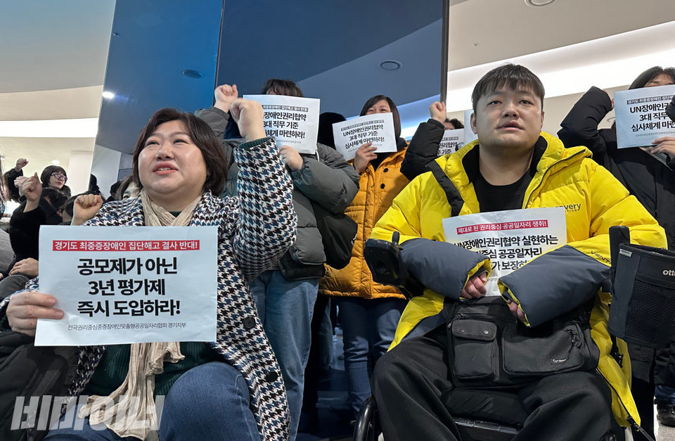 전국권리중심중증장애인맞춤형공공일자리협회 경기지부는 29일 오전 11시, △지속가능한 일자리 보장 △권리중심공공일자리 권리생산 캠페인 노동 정체성 보장 △경기도권리중심공공일자리지원조례 올해 내 제정이라는 세 가지 요구안을 걸고 단식 농성에 돌입했다.