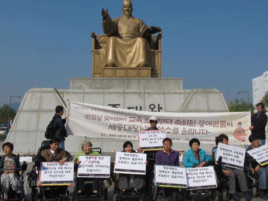 565번째 한글날을 맞이해 교육으로부터 소외된 장애인들이 세종대왕에게 장애성인 교육권 보장에 관한 상소를 올렸다.