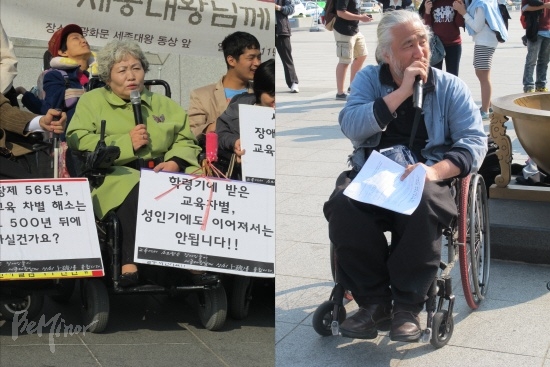 이날 기자회견은 노들장애인야학 학생인 장애경(뇌병변장애 1급) 씨와 이준수(뇌병변장애 2급) 씨가 '세종께 올리는 상소문'을 올리는 것으로 마무리됐다.