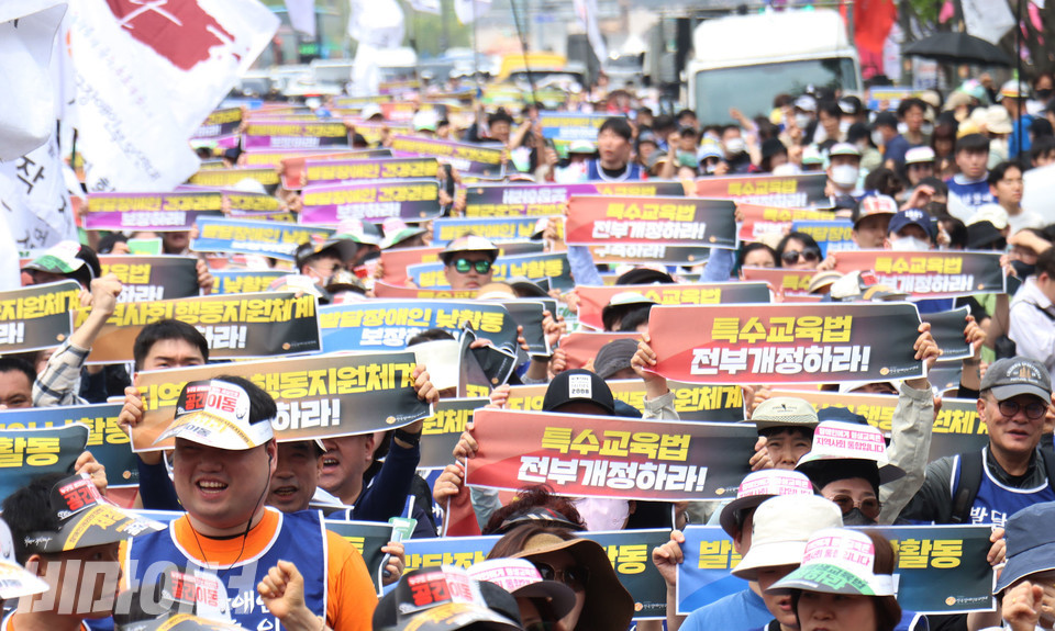 이어 “지원인력뿐만 아니라 특수교사도 너무 부족하다. 특수교육 대상자는 늘었는데 특수교사 정교사율은 현저히 줄어들었다”면서 “22대 국회는 특수교육법을 전면 개정하여 중증발달장애학생의 교육권을 보장하라”고 촉구했다.