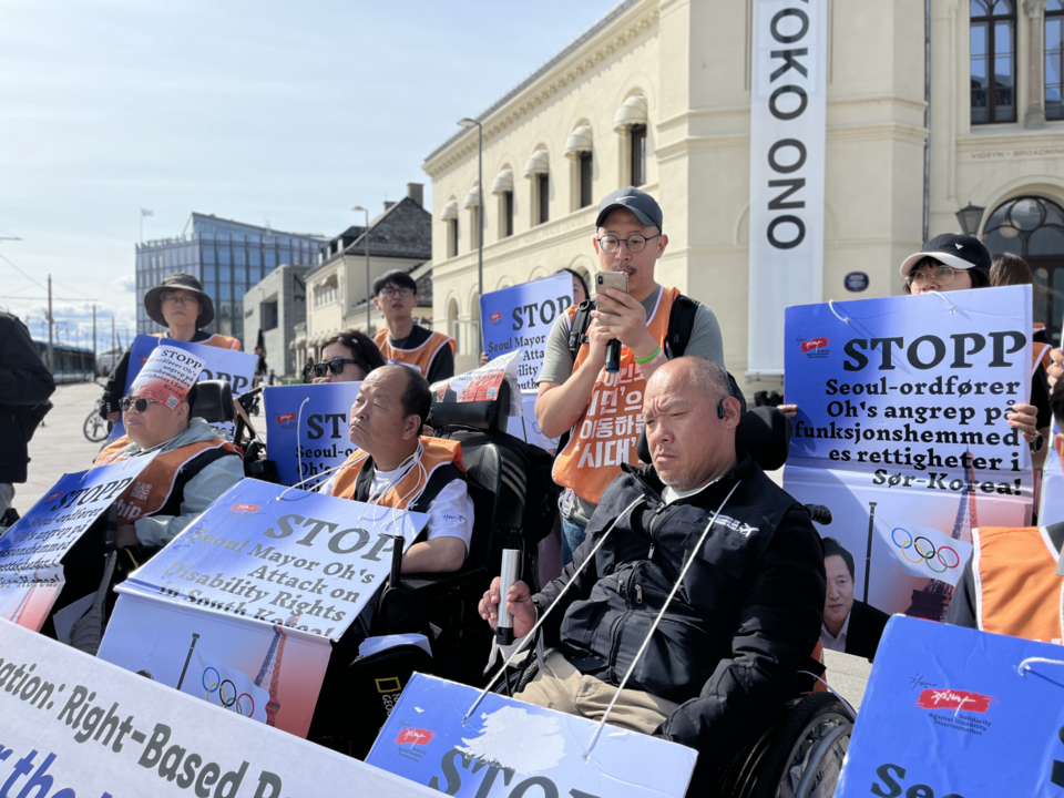 이 부회장은 “오 시장은 중증장애인은 거주시설에 있는 것이 안전하다며 거주시설 강화 정책을 펼치고 있다. 이는 장애인은 아무것도 할 수 없는 쓸모없는 존재로 낙인찍는 것”이라면서 “우리는 감옥 같은 거주시설이 아니라 지역사회에서 함께 살고 싶다. 이러한 한국 상황을 알리기 위해 오슬로에 왔다”고 전했다.