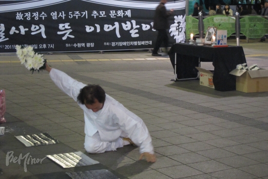 '정정수 열사 5주기 추모문화제'가 경기장애인차별철폐연대(아래 경기장차연) 주최로 19일 저녁 7시 수원역 광장에서 열렸다.