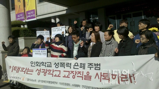 경기도 하남시의 특수학교인 성광학교 이태화 교장이 10월 31일자로 학교에 사직서를 제출했다. 이태화 교장은 지난 2007년 인화학교 교장으로 취임해 성폭력 사건을 은폐하고 당시 학생들과 교사들을 탄압한 것으로 알려졌다.