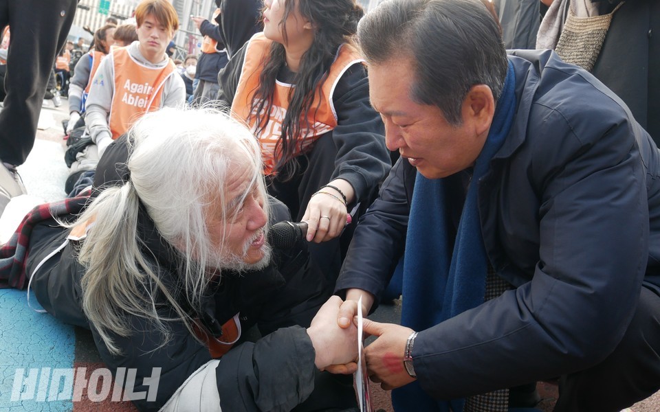오후 5시경, 정청래 더불어민주당 국회의원이 윤석열 탄핵 집회에 참석했다. 장애인들은 “정청래 의원님! 태연재활원 사태 국정조사 해주십시오! 의원님!”이라 외쳤다.