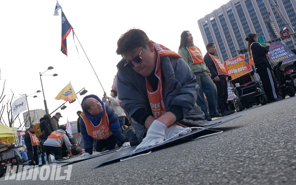 장애인들, 공대위 구성… 2시간 포체투지