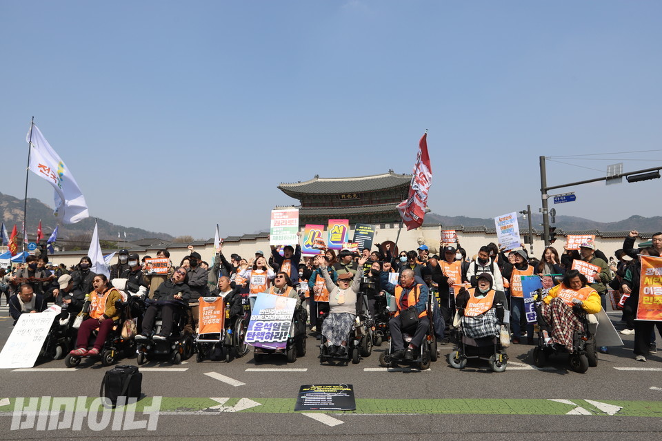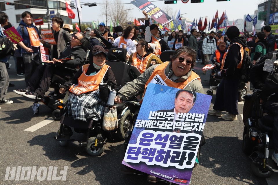 4월 4일 오전 윤석열 파면, 그 역사의 현장에 함께 한 장애인들의 모습을 사진으로 전한다.