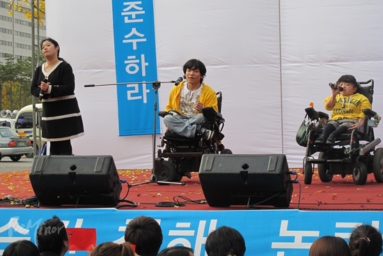 연대발언도 이어졌다. 전국장애인차별철폐연대 박경석 상임공동대표는 "장애인이 교육에서 차별받지 않고 당당하게 살아갈 수 있도록 하려고 많은 장애인 활동가가 잡혀가고 벌금 내며 '장애인 등에 대한 특수교육법'을 만들었는데 이명박 정부는 수많은 투쟁으로 만든 법하나 지키지 않고 있다"라면서 "장애인 이동권이 4대강 강물에 빠졌듯 투쟁하지 않으면 교육권마저 4대강에 빠질 것"이라며 투쟁을 결의했다.