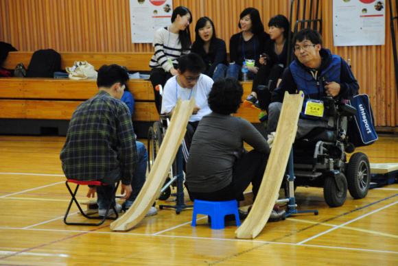 ▲홈통과 마우스 보조기구를 이용하는 한 참여자의 열의가 뜨겁다