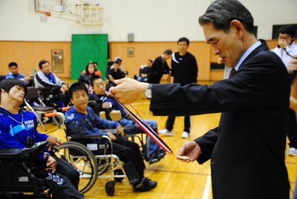 ▲체육선생님의 보조를 받아 경기에 참여하는 대구보건학교 학생선수의 모습