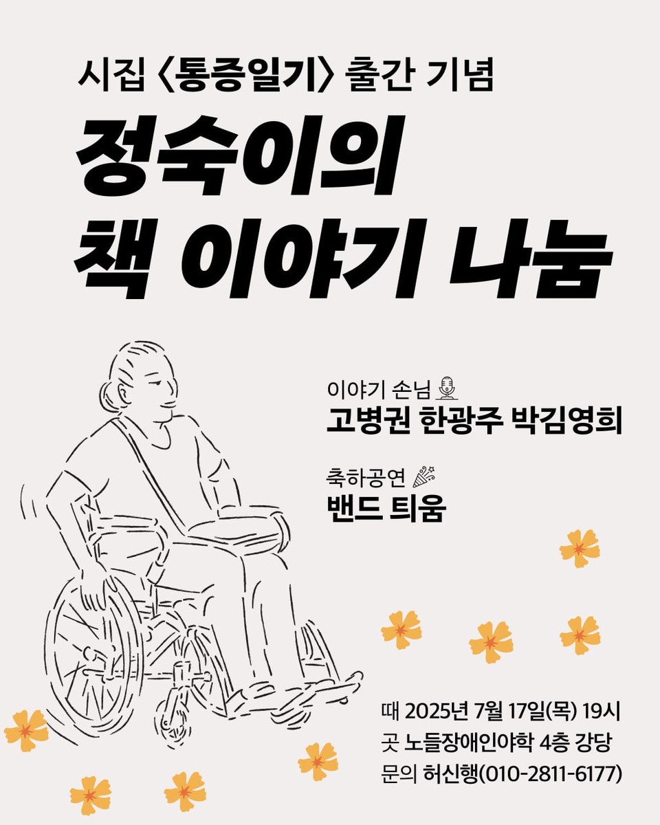 오는 17일 오후 7시, 노들장애인야학 4층 강당에서는 박정숙 시인의 이야기를 직접 들을 수 있는 북토크가 열린다.