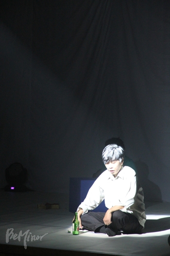 ![]() ▲무대에 떨어진 마음 조각이 없는 집을 그린 현수막이 펼쳐진 모습. |