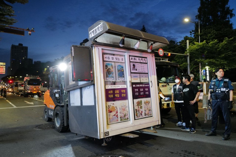동네 명소가 강제철거된 건 8일 새벽 3시였다. 노점상들 기억으론 당시 철거용역 250명, 광진구 공무원 100명 정도가 행정대집행에 동원됐다고 한다. 현장에 새벽 4시경 도착한 최인기 민주노점상전국연합 수석부의장은 “도착하니 건대사거리 일대에 바리케이드(울타리)가 쳐져 있었어요. 철거도 거의 완료된 상황이었고요. 가게박스를 지게차로 떠서 대형 트럭에 싣고 있었어요”라고 말했다.