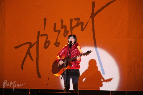 ![]() ▲1부 첫 순서로 초대가수 '시와'가 노래 공연을 하고 있다. |