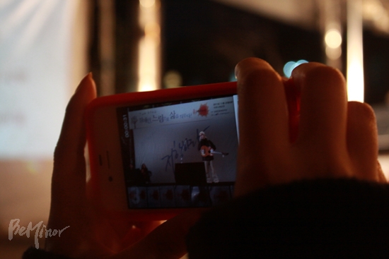 ![]() ▲한 관람객이 박준 씨의 공연을 스마트폰 영상에 담고 있다. |