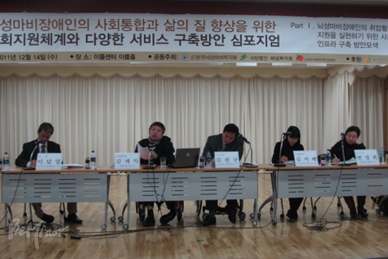 뇌성마비장애인의 취업 활성화 지원을 실현하기 위한 사회적 인프라 구축 방안을 모색하는 자리가 마련됐다. '뇌성마비장애인의 사회통합과 삶의 질 향상을 위한 사회지원체계와 다양한 서비스 구축방안 심포지엄'이 14일 늦은 1시 30분 이룸센터 이룸홀에서 열렸다.