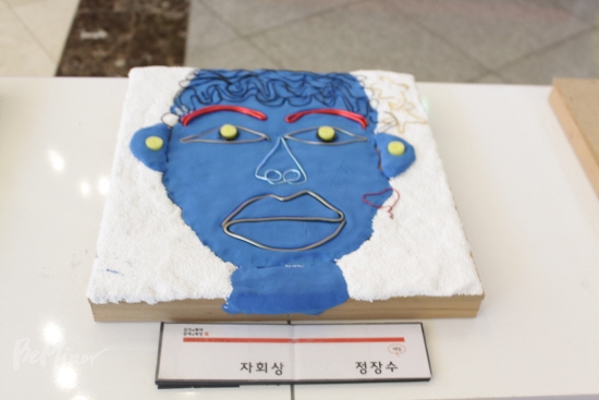 ![]() ▲부천 해밀도서관의 성인 시각장애인들과 대구 광명학교의 시각장애인 어린이들이 점토의 일종인 클레이를 이용해 자신의 얼굴을 캐리커처로 제작한 작품도 전시되어 있다. |
