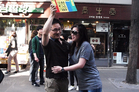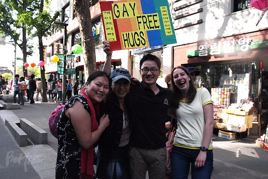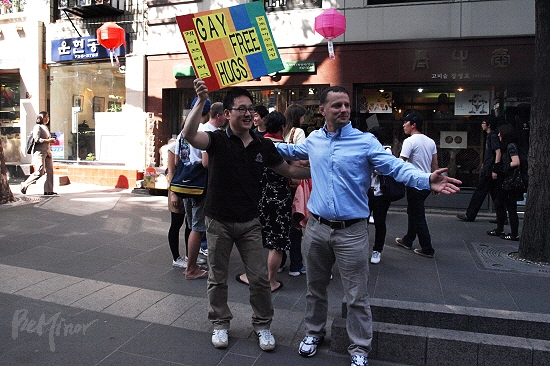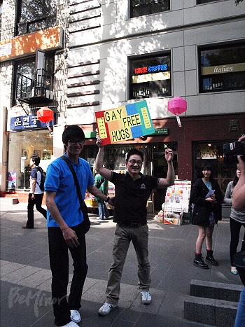 이날 프리허그를 진행한 친구사이 천정남 회원은 "외국인들은 거리낌 없이 표현을 잘하는데 우리나라 사람들은 아직도 신기한 볼거리로 여기는 듯하다"라고 소감을 전했다.