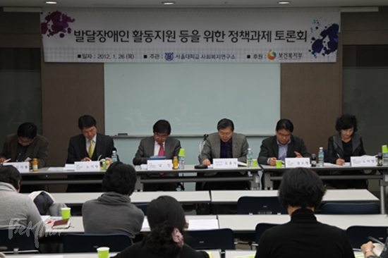 ‘발달장애인 활동지원 등을 위한 욕구조사 및 정책과제 수립연구’를 통해 나온 다양한 정책과제에 대해 장애인단체의 의견을 수렴하는 토론회가 서울대 사회복지연구소 주관으로 26일 늦은 1시 30분 이룸센터 교육실에서 열렸다.