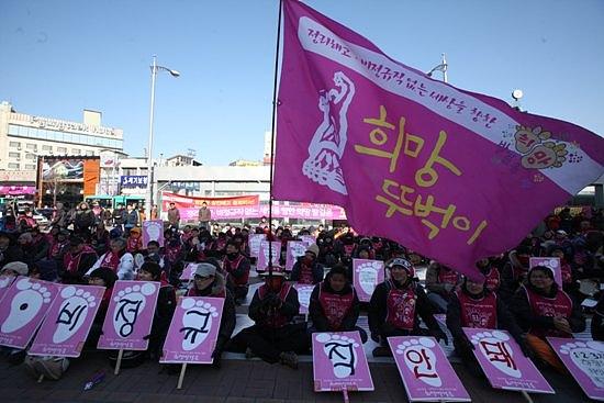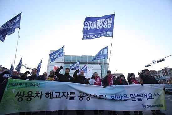 ▲11일 오후 3시 평택역에서 열린 쌍용차투쟁 승리를 위한 금속노동자 결의대회에서