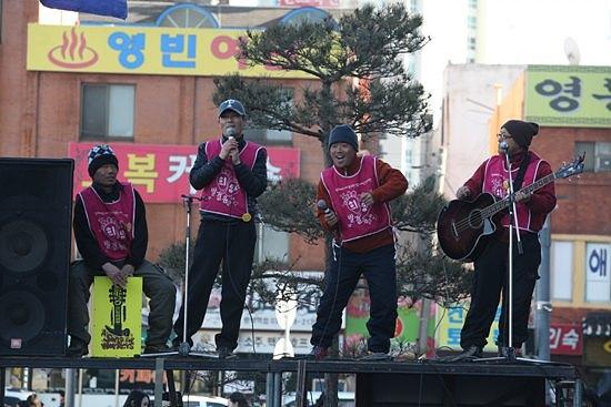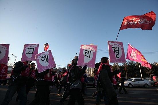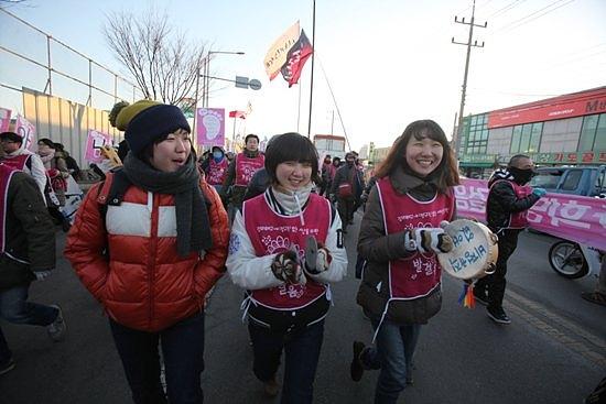 3차 쌍용차 공장 포위의 날 행사가 열린 11일 오후 2시 희망뚜벅이는 평택역에 모여 간단한 집회를 하고, 오후 3시 금속노조 주최의 집회에 참석했다. 희망뚜벅이와 금속노조 집회 참가자 3천여 명은 집회를 마치고 쌍용차 평택 공장 앞까지 행진해 3차 쌍용차 공장 포위의 날 행사를 12일 새벽까지 진행했다. (기사제휴 = 참세상)