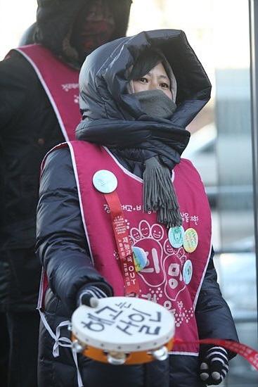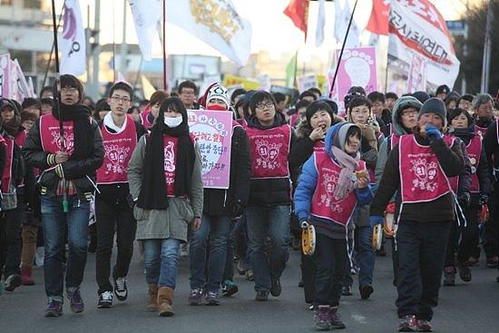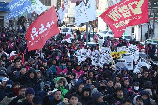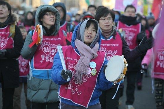 하며 3시에 시작하는 금속노조 집회로 이동하고 있다.