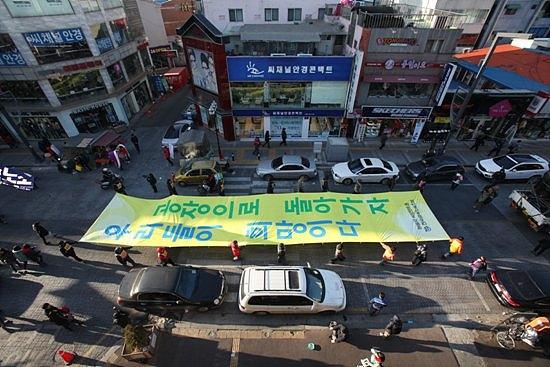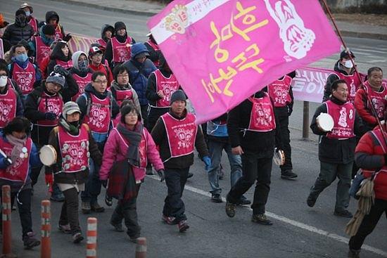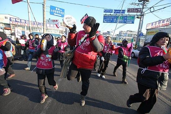 ▲흥겹고 희망찬 희망뚜벅이들의 발걸음. 희망뚜벅이와 금속노조 조합원 3천여 명은