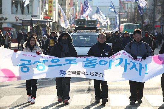 ▲쌍용차 투쟁 승리를 위한 금속노동자 결의대회를 끝내고 쌍용차 공장으로 행진하는