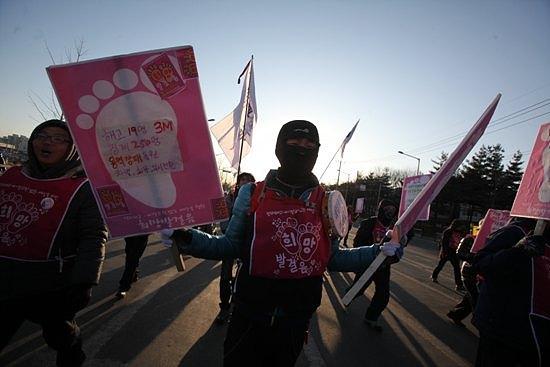 5시 30분경 평택역에서 집회를 끝내고 행진해 6시 40분경 평택공장 앞에 도착했다.