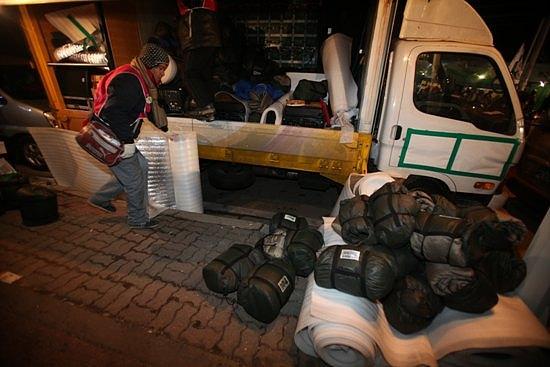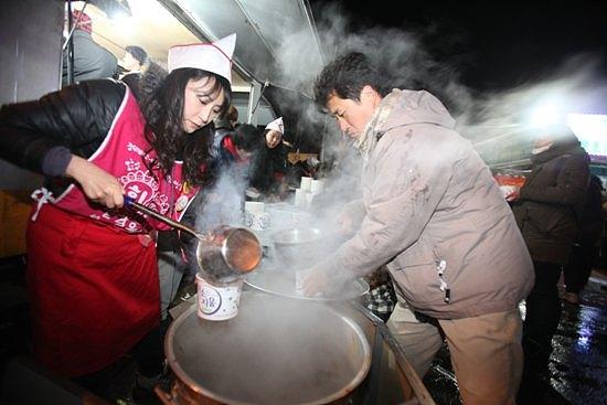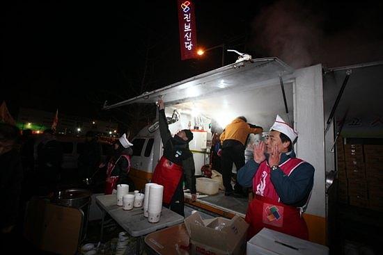 ▲진보신당 밥차. 진보신당은 2천명 분의 육개장을 준비해 한 그릇에 2천원에 팔고,