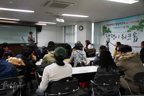 한편, 이날 강의는 한 시간에 걸쳐 진행됐으며, 김 지도위원은 걸쭉한 입담으로 85호 크레인에서 벌인 309일의 농성과 희망버스 등에 대한 이야기를 생생하게 전달해 장애인활동가들로부터 큰 박수를 받았다.