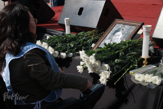 이어 참가자들은 무대 앞에 마련된 최옥란 열사의 영정에 분향과 헌화를 하며 이날 추모대회를 마무리했다.