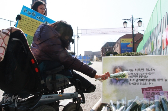 빈곤해방실천연대 김영진 위원장은 “최옥란 열사는 의지와 노력으로 이 세상의 모순을 타파하고자 했으나 국가가 해야 할 일을 소홀히 해서 죽임을 당한 것과 마찬가지”라면서 “장애, 여성, 빈곤, 노동 등 전체 문제에 맞서다 장렬히 가신 최옥란 열사의 뜻은 진정한 연대를 통해 이뤄낼 수 있을 것”이라고 강조했다.