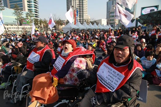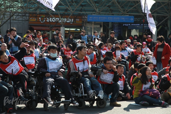 또한 420공투단은 “우리는 이미 투쟁을 통해, 전 민중의 삶을 옥죄고 있는 신자유주의의 사슬을 끊어내지 않고는 장애민중의 해방을 향해 온전히 한 발자국도 전진할 수 없음을 경험했다”라며 “한미 FTA 폐기, 아름다운 제주 강정마을을 처참하게 짓밟는 해군기지, 쌍용자동차 해고 노동자들의 투쟁과 재능교육 해고자들의 투쟁 등 이명박 정권의 악랄하고 비열한 행태에 대한 투쟁 또한 멈추지 않을 것”이라고 밝혔다.