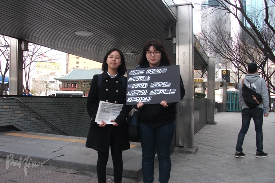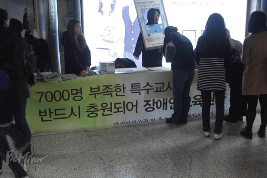 이들은 1인시위 후 종각역 내에 마련된 '420장애인차별철폐공동투쟁단'(아래 420공투단)의 농성장에서 중증장애인 활동가들과 함께 특수교사 정원 확보를 위한 시민 서명전을 벌이기도 했다.