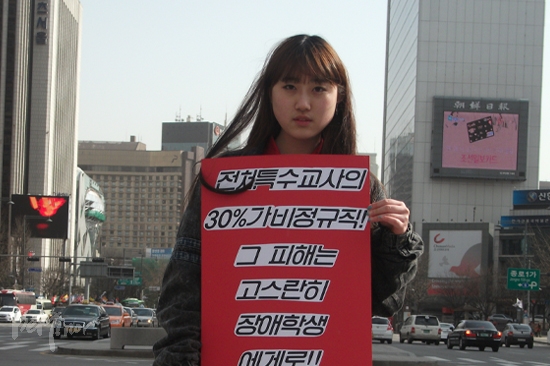 유특연대, 서울 시내 곳곳에서 특수교사 충원요구 1인시위