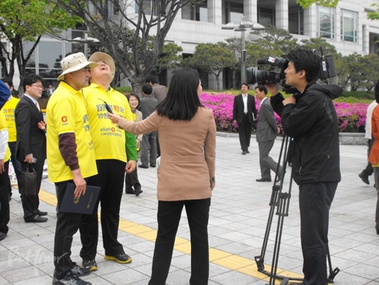 오늘 균도와 세상걷기 시즌3 출정식을 한다는 소식에 언론에서 갑자기 부산해졌다. 쉴새없는 전화 벨소리에 며칠이 시끄럽다. 그래도 서울 가는 길, 날이 날이니만큼 많은 관심을 보인다. 몇 건의 인터뷰와 방송촬영과 함께 시즌3를 알렸다. 부산시청에 많이 오신 장애인과 그 가족들에게 감사함을 전한다.