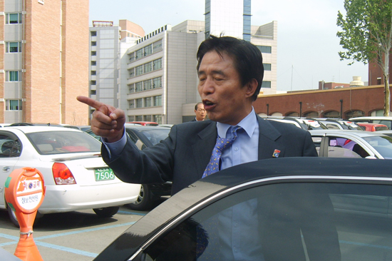 인사말을 마치고 차에 타기 위해 주차장으로 나온 김 시장 일행은 기다리고 있던 장애인과 대학생과 만났고 이들 사이에 실랑이가 잠시 벌어졌다. 장애인과 대학생들의 요구와 항의에 흥분한 김 시장은 손가락질을 하며 “너 이 XX, 가만두지 않겠어”라고 막말을 하고 차에 탑승해 자리를 피했다.