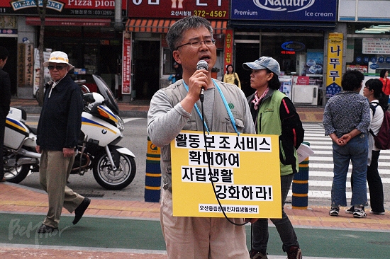 이들은 '활동보조서비스 지원' 문제와 관련해서도 "각 지역에서는 최대 월 300시간과 2,3급 장애인에 대한 서비스도 이뤄지고 있음에 반해 오산시는 예산이 없다는 이유로 타 지역의 최대시간에도 훨씬 못 미치는 활동보조 시간을 배정하거나 2,3급 장애인에 대한 지원 대책은 아예 없다"고 지적했다. 오산센터에 따르면 오산시는 지난해 장애인 85명에게 월 평균 30시간, 하루 1시간의 활동보조시간을 제공했다.