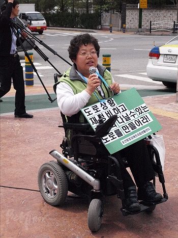 경기장애인차별철폐연대 김병태 공동대표는 "경기도에 콜택시가 1,000대 정도 필요한데 실제로 도입된 것은 40대를 넘지 못한다"라면서 "저상버스도 부족하고 콜택시도 부족한 실정"이라고 지적했다. 김 공동대표는 "서울 인천과 맞닿아 있으면서도 장애인 인권은 밑바닥"이라면서 "가만히 있으면 장애인의 인권은 보장되지 않기 때문에 우리 힘으로 우리의 인권을 향상시키자"라고 전했다.