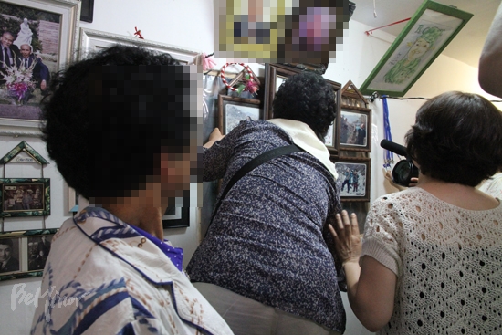 ▲가족들은 '사랑의 집' 벽면에 걸려 있는 사진을 보고 울음을 터뜨렸다.