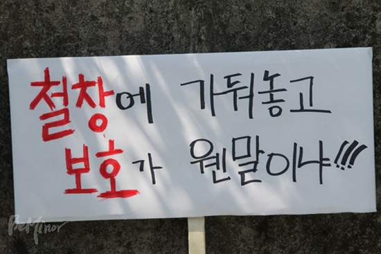 ▲"철창에 가둬놓고 보호가 웬 말이냐!"